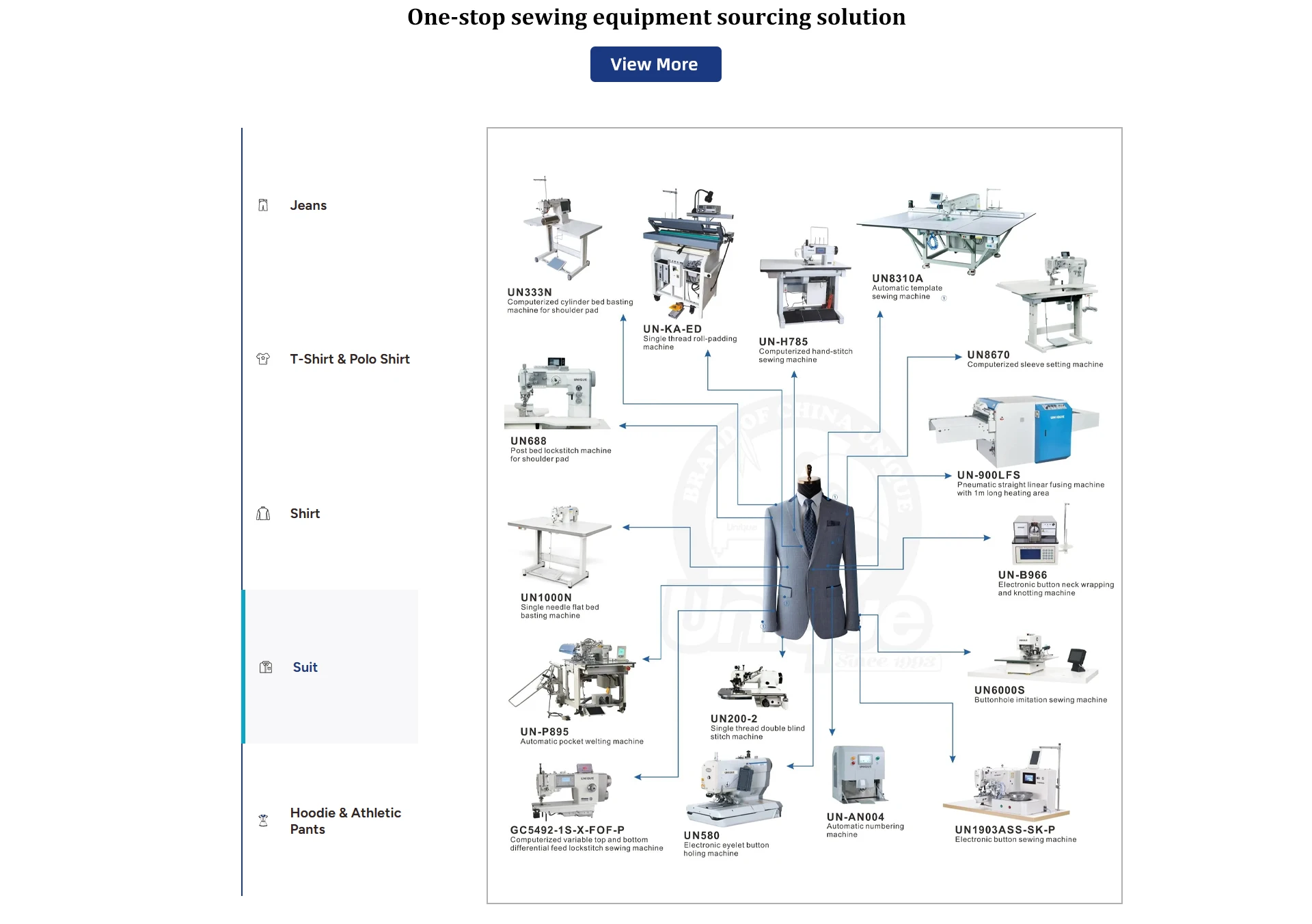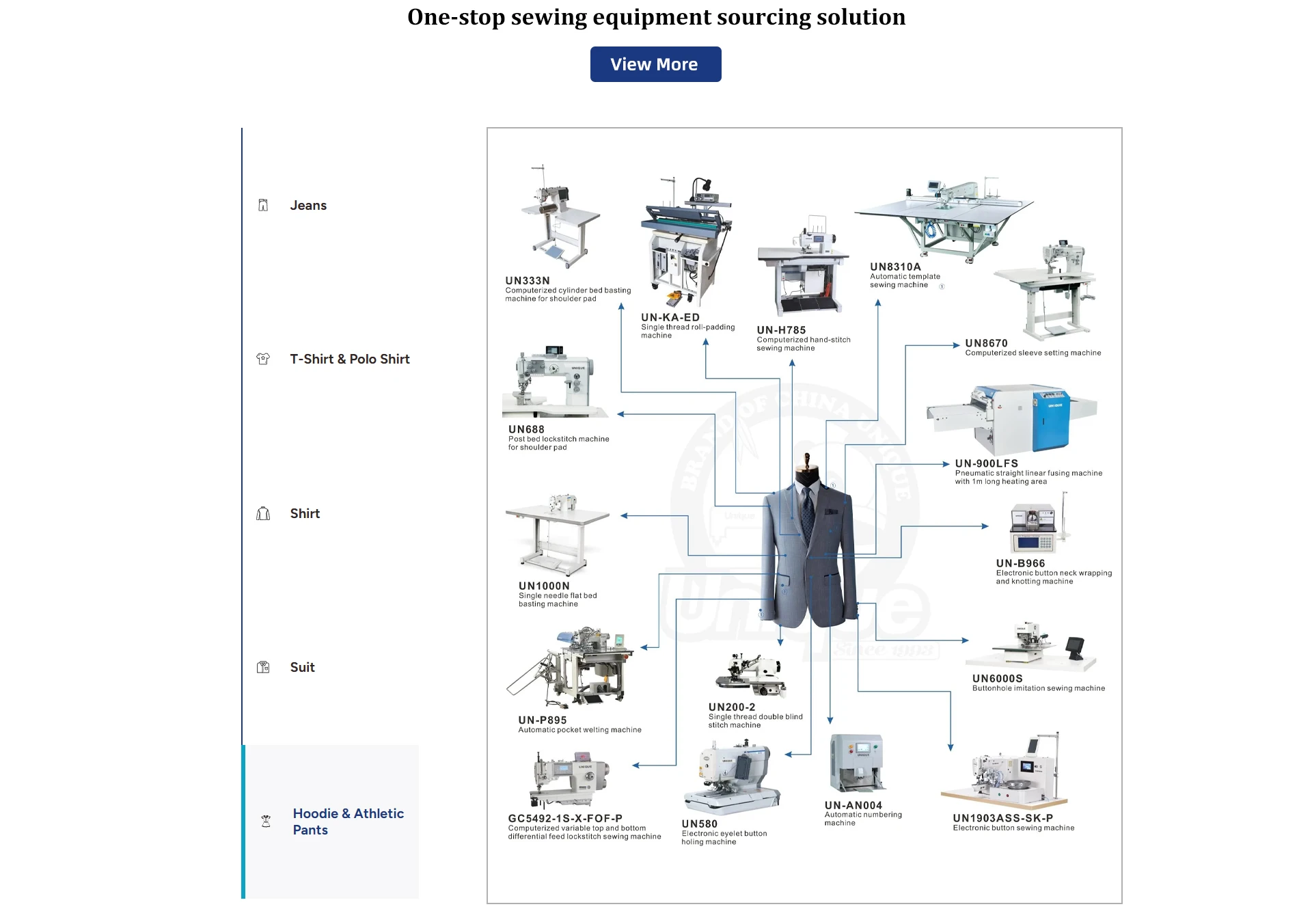 We are supplying 1000+ types of garment equipment like sewing machines,